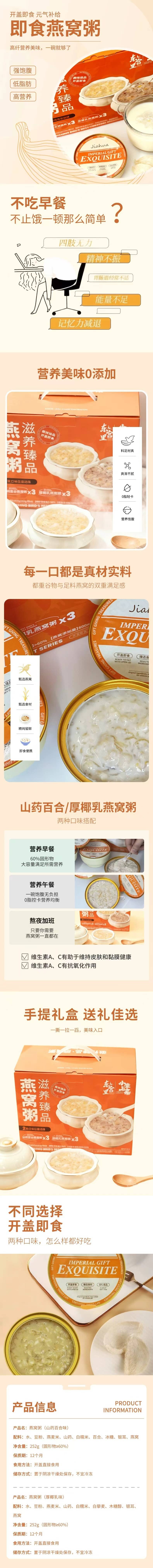 燕窝粥厚椰乳山药百合中老年营养滋补品营养滋补代餐送礼礼盒装
