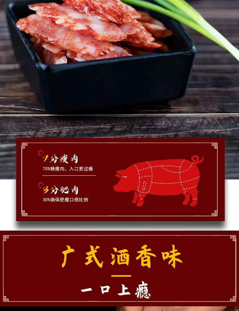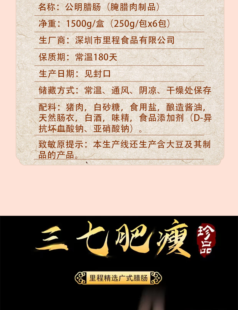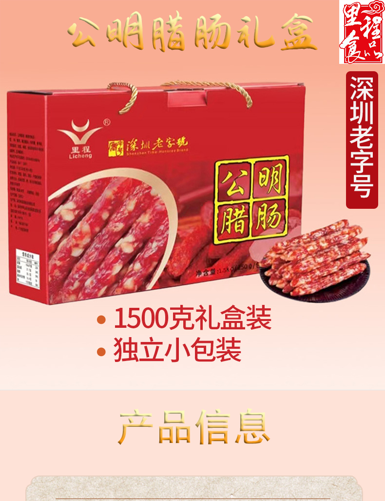 里程食品公明腊肠1500g纯猪肉礼盒装送礼佳品正宗广味